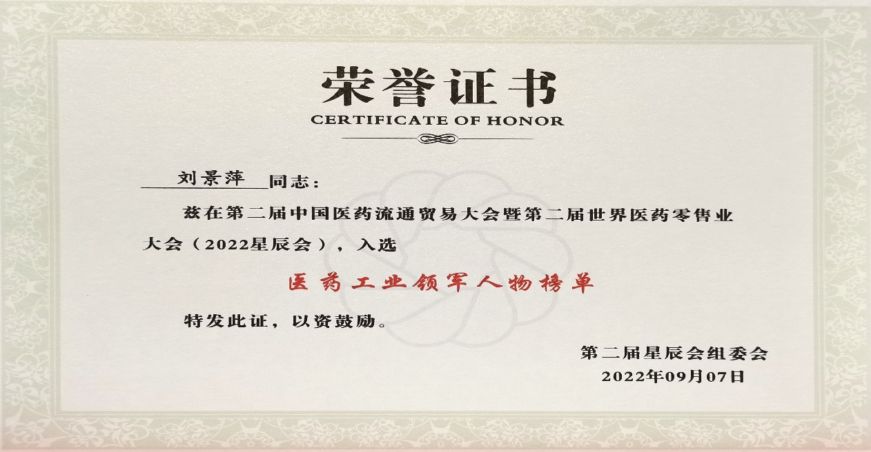 本次星辰会期间,环球360斩获颇丰,获得多项行业奖项及荣誉。在开幕式上,刘景萍董事长荣获“医药工业领军人物”称号。