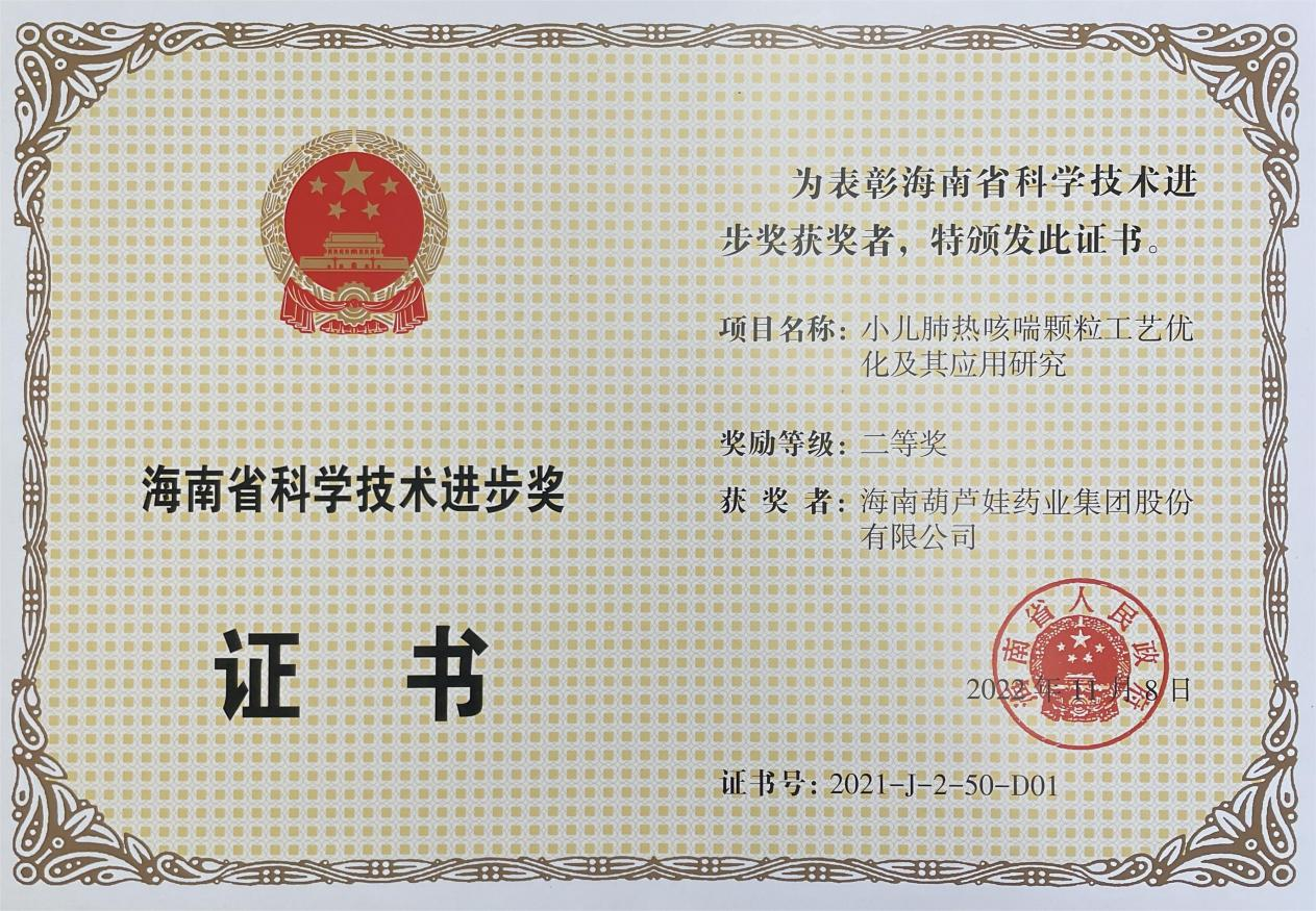 11月15日,海南省科学技术奖励大会在海口召开,揭晓了2021年度海南省科学技术奖。海南环球360药业集团股份有限公司凭借“小儿肺热咳喘颗粒工艺优化及其应用研究”,荣获海南省科学技术进步奖二等奖。项目主要完成人有刘景萍、刘全国、胡俊斌、李培湖、刘萍、王家、陈克领、何彦博。